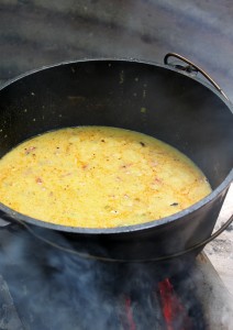 One trip we made Creamy Summer Chowder. I chopped the veggies that needed to be sautéed in the Dutch oven and packed them in a quart zip top bag. I labeled it “Chowder #1. Cook in 1 Tbs. oil.” Then I assembled the liquid ingredients, blended corn, seasonings and potatoes in a second bag and labeled it “Chowder #2. Cook till potatoes tender.” I placed both bags in a large gallon bag to keep them together and easy to locate. Now I literally had nothing to do but simply cook the soup. These bags are reusable, so don’t forget to wash them and dry them thoroughly. Just rinse them at camp and clean them properly when you get home.