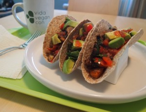 My Go-To Vegan meal is a quick mexican bowl! Just throw in veggies, beans, salsa, and avocado!