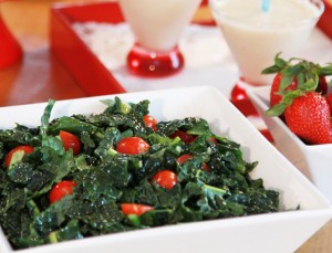 - 3 cups very thinly sliced, well packed kale, washed and dried